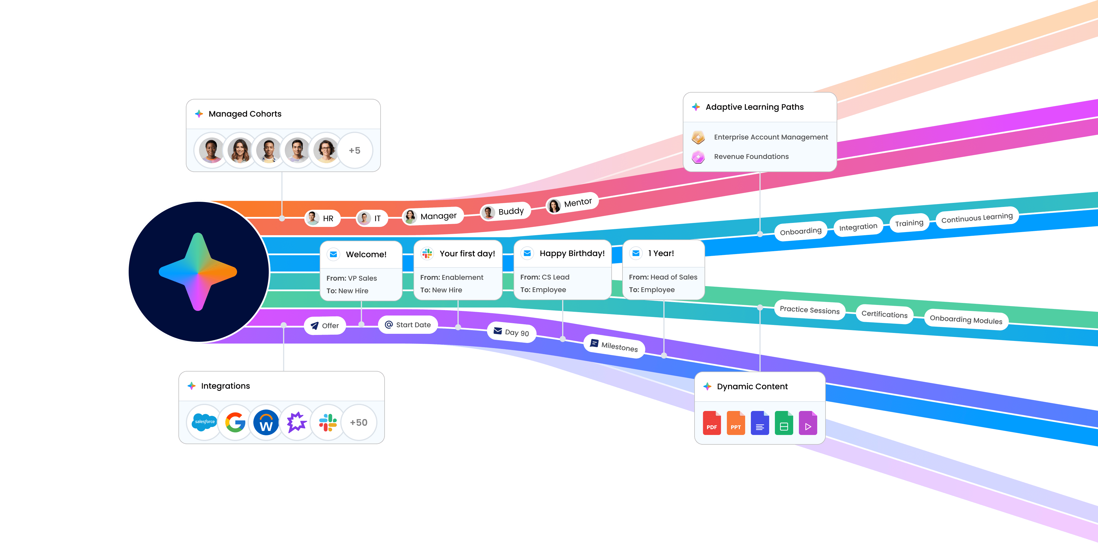 Deliver tailored onboarding, learning journeys, certifications, and SKO experiences in one centralized platform — designed to engage employees and scale with your team.