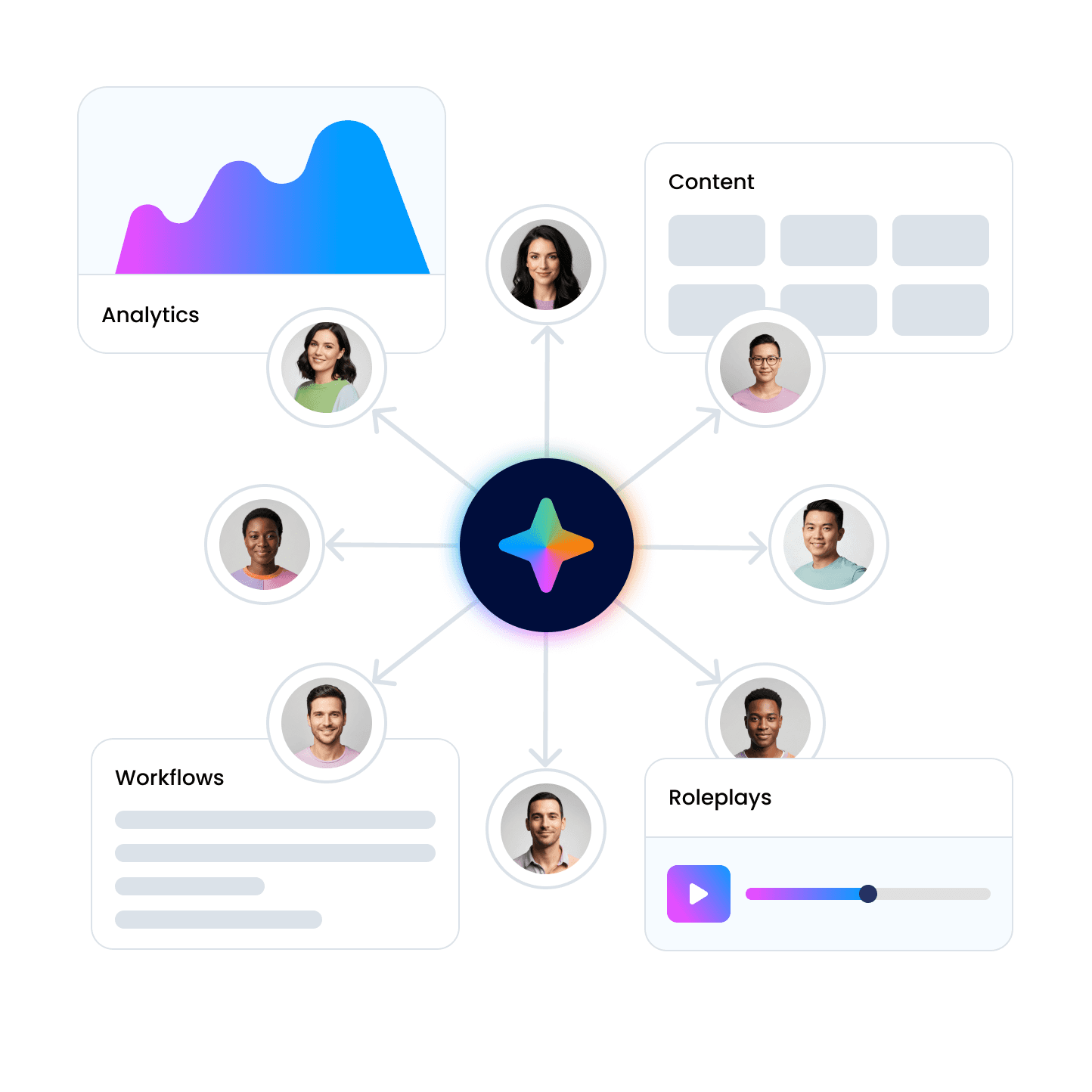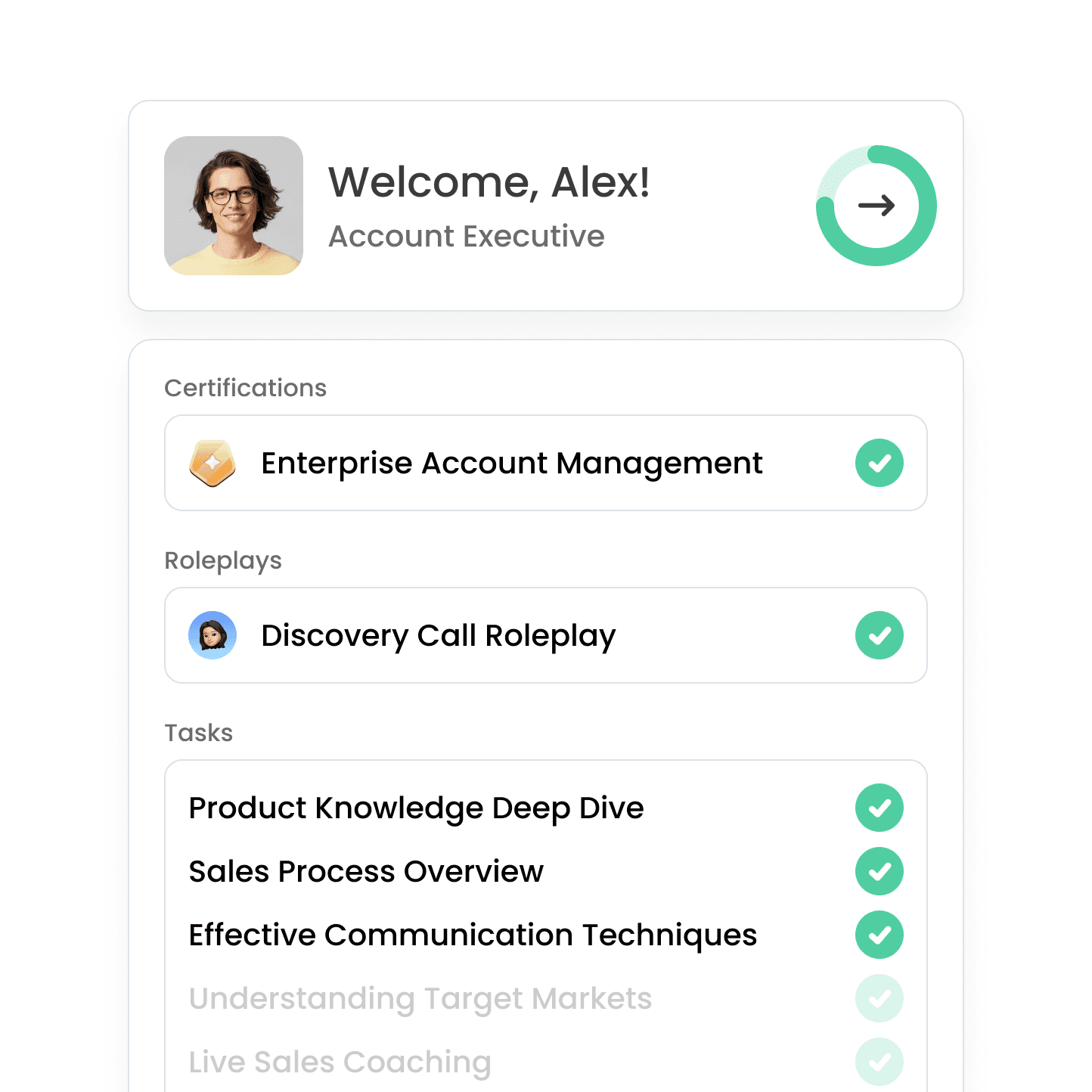 Embed AI-powered roleplay, certification, and reinforcement into daily workflows — creating structured repetition, measurable accountability, and continuous skill development.